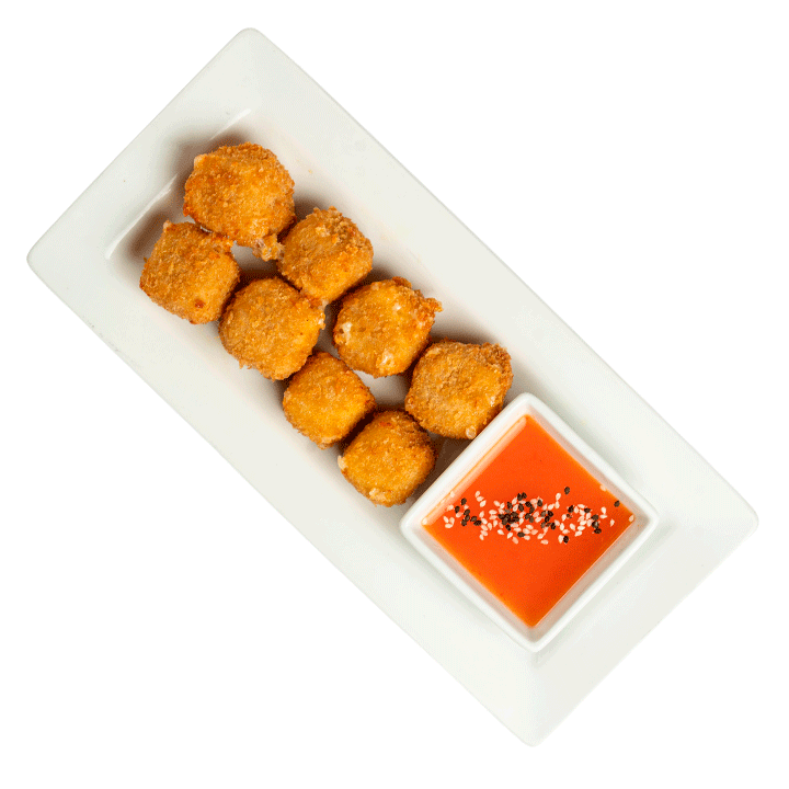 Melted cheese topped with a Panko crust, accompanied by sweet and sour sauce.