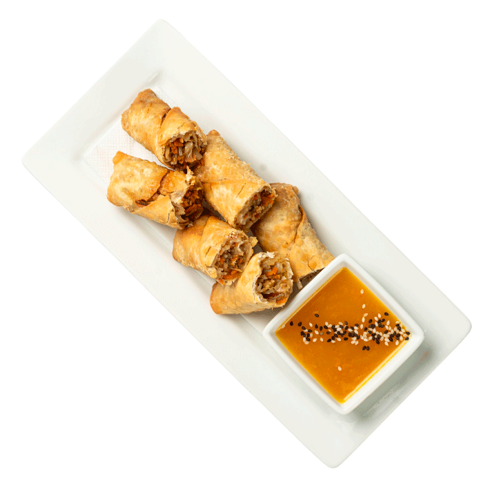 Crunchy dough rolled with vegetables, chicken and shrimp.